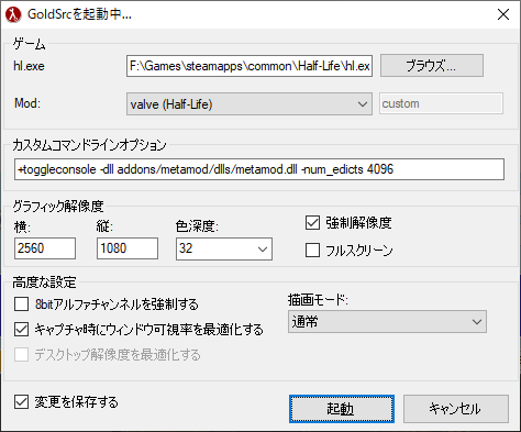 To start, open HLAE. It's a separate application. I run my Half-Life servers with mods, so the appropriate parameters for AMX Mod X have to be passed in as well. Overall, my configuration looks like this: