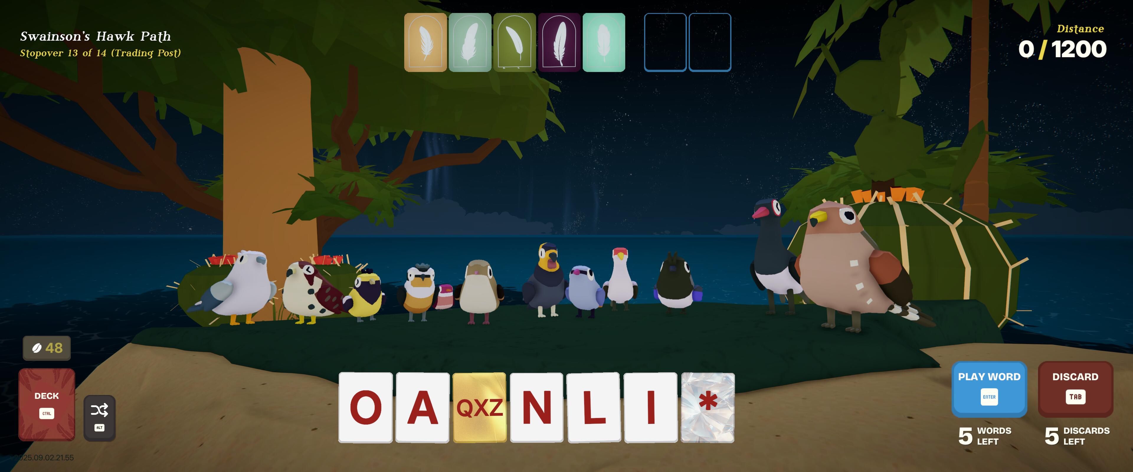 A close friend of mine streams games to me occasionally over Discord. Recently, she's been into a game called Birdigo. It's a roguelike word game where you spell words to score points. There's deckbuilding involved, as well as powerups that kind of remind me of Balatro. It's fun to watch. And I bought the game just because I like it too.